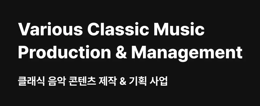 다채로운 클래식 콘텐츠(현대음악, 미술, 문학, 행위예술, 미디어)의 콜라보레이션을 통한 클래식 음악의 대중화와 문화예술 향유를 위한 프로젝트